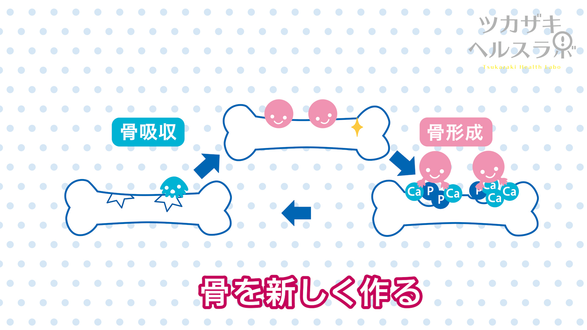 骨のリモデリングと言って、我々の骨は一見何も変化がないように見えますが、日々古い骨を削って新しい骨で補填するという形で新陳代謝を行っています。
