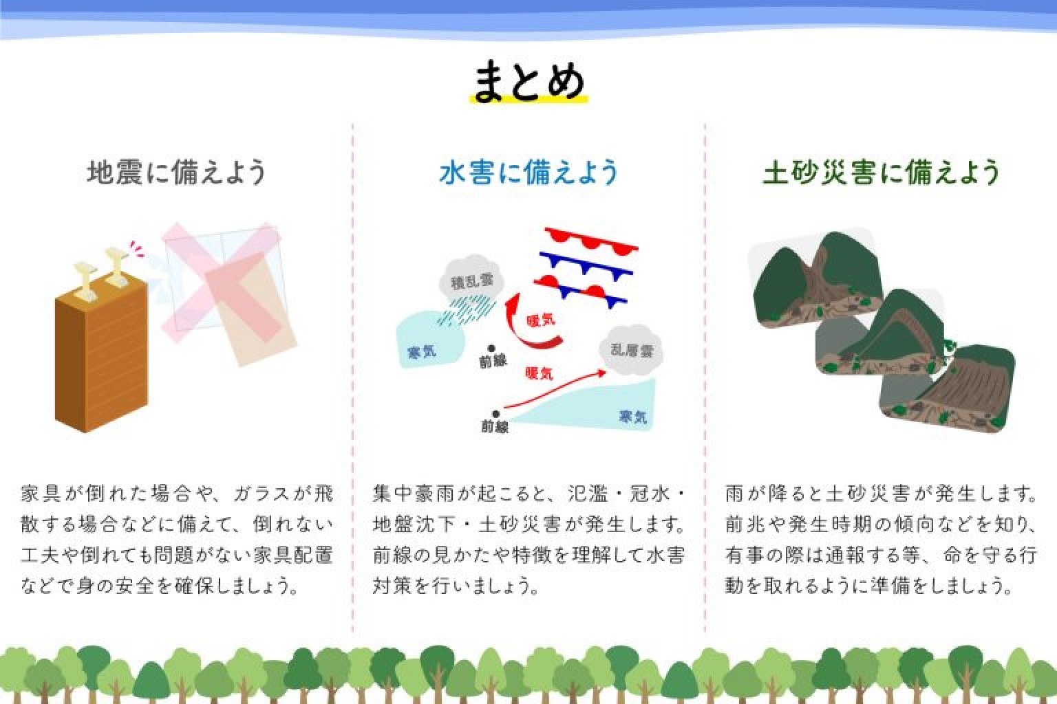 今回のコラムでは「災害から命を守る」ための、正しい知識と日ごろの備えについて、地震・水害・土砂災害についておさらいをしたいと思います。